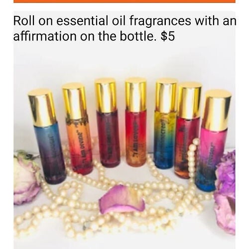 Aromatherapy is a fast and easy way to destress, enhance your mood and uplift your spirit. Amazing smell, natural ingredients, easy to use, pre-diluted. Each oil smells different and has a different focus. The oils with affirmations on them have a crystal inside the jar.